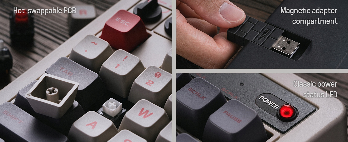 RETRO BIAŁY WAŁ 2.4G+BLUETOOTH KLAWIATURA MECHANICZNA PROGRAMOWALNY+AB КЛЮЧІ
