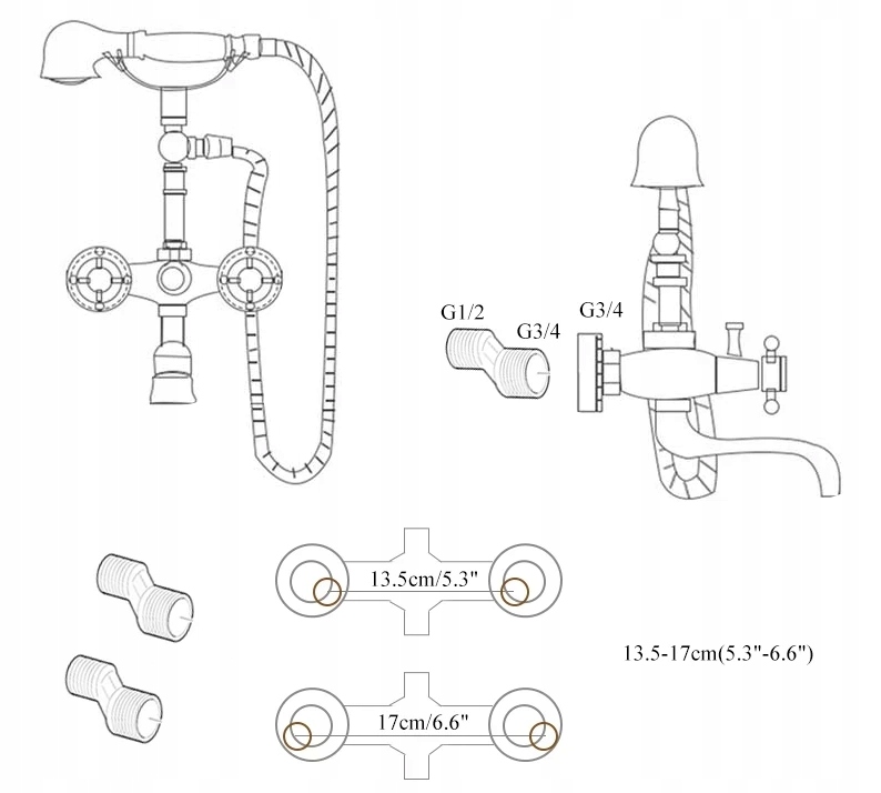 👉 Эргономичная душевая рукоятка:В комплект входит стильныйдуш рукой, который не только идеально сочетается с ретро-дизайном смесителя, но и обеспечивает комфорт при повседневном использовании.