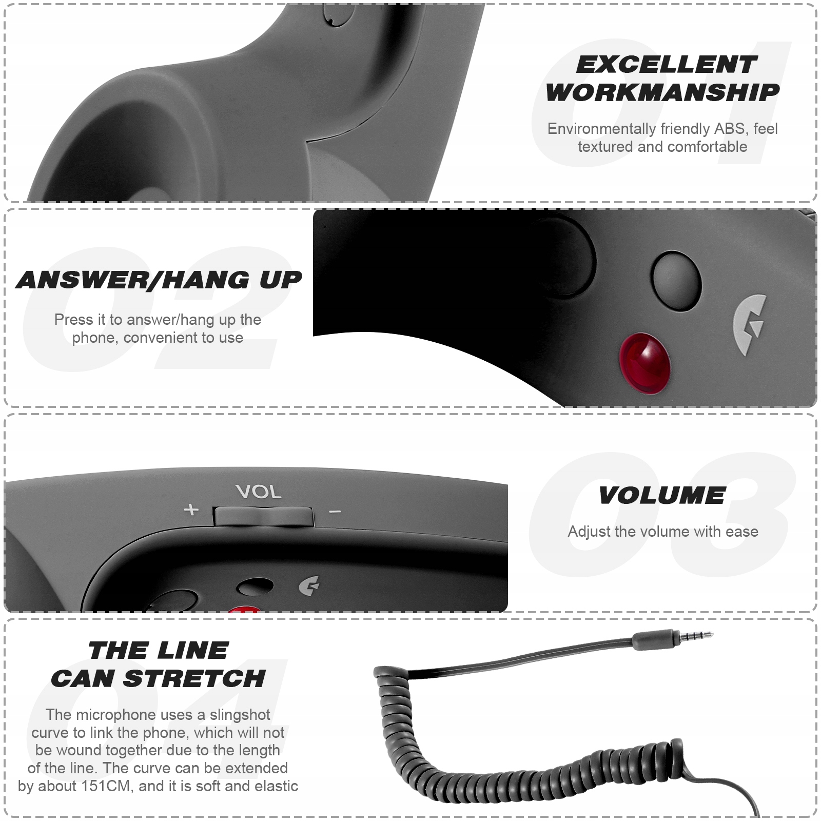 Телефон сделан из АБС-пластика, простой, но модный. Он совместим с мобильными телефонами и компьютерами с интерфейсом 3,5 мм. Со встроенными клавишами отбоя и регулировки громкости, прост в использовании. Дайте вам отличное качество звука. Это будет хороший выбор для вас.