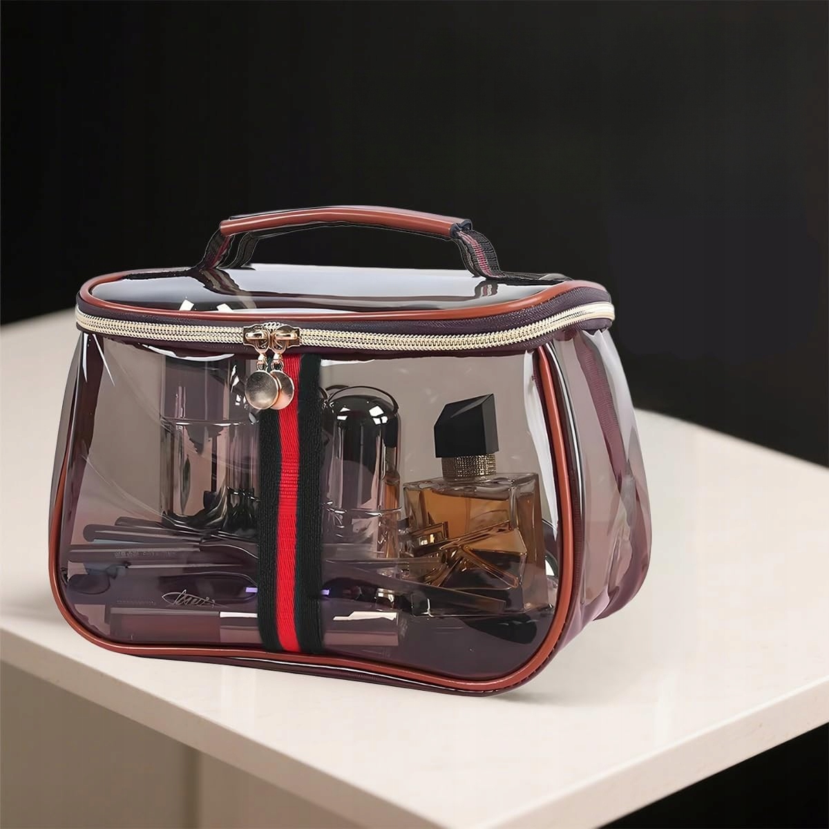 Винтажная косметичка в стиле ретро, прозрачный органайзер для макияжа с ручкой, большая вместимость