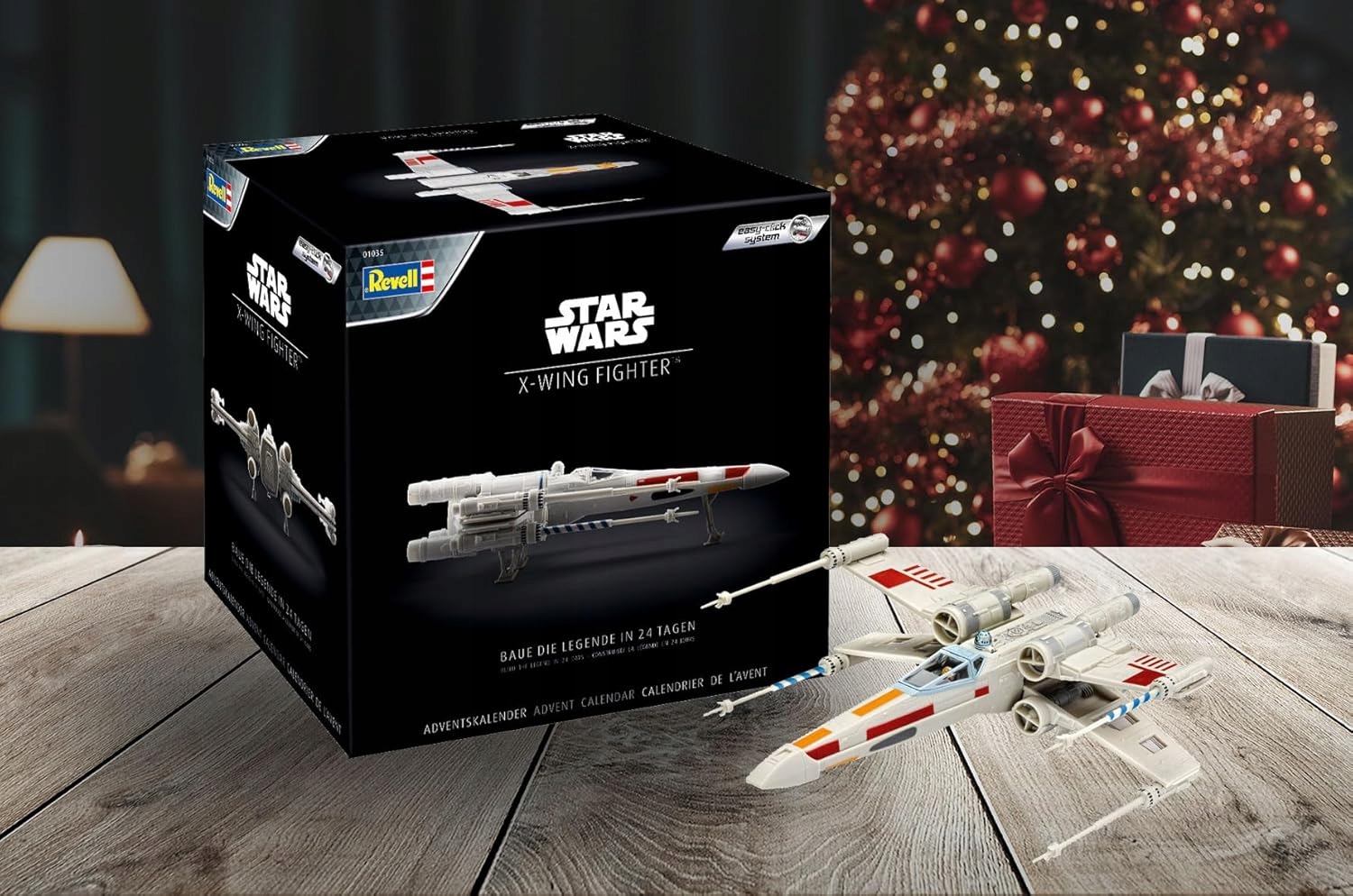 Адвент-календарь Revell Star Wars — настоящее удовольствие для поклонников «Звездных войн». Соберите самостоятельно три культовые машины —Тысячелетний сокол, истребитель X-wing и TIE-истребитель Дарта Вейдера.