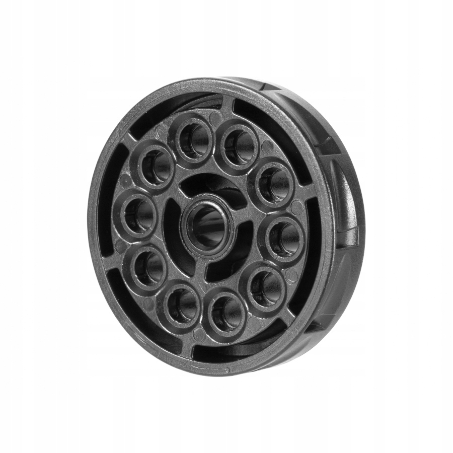 Револьвер стреляет стальными пулями ВВ диаметром 4,46 мм, загруженными в полимерную вставку.