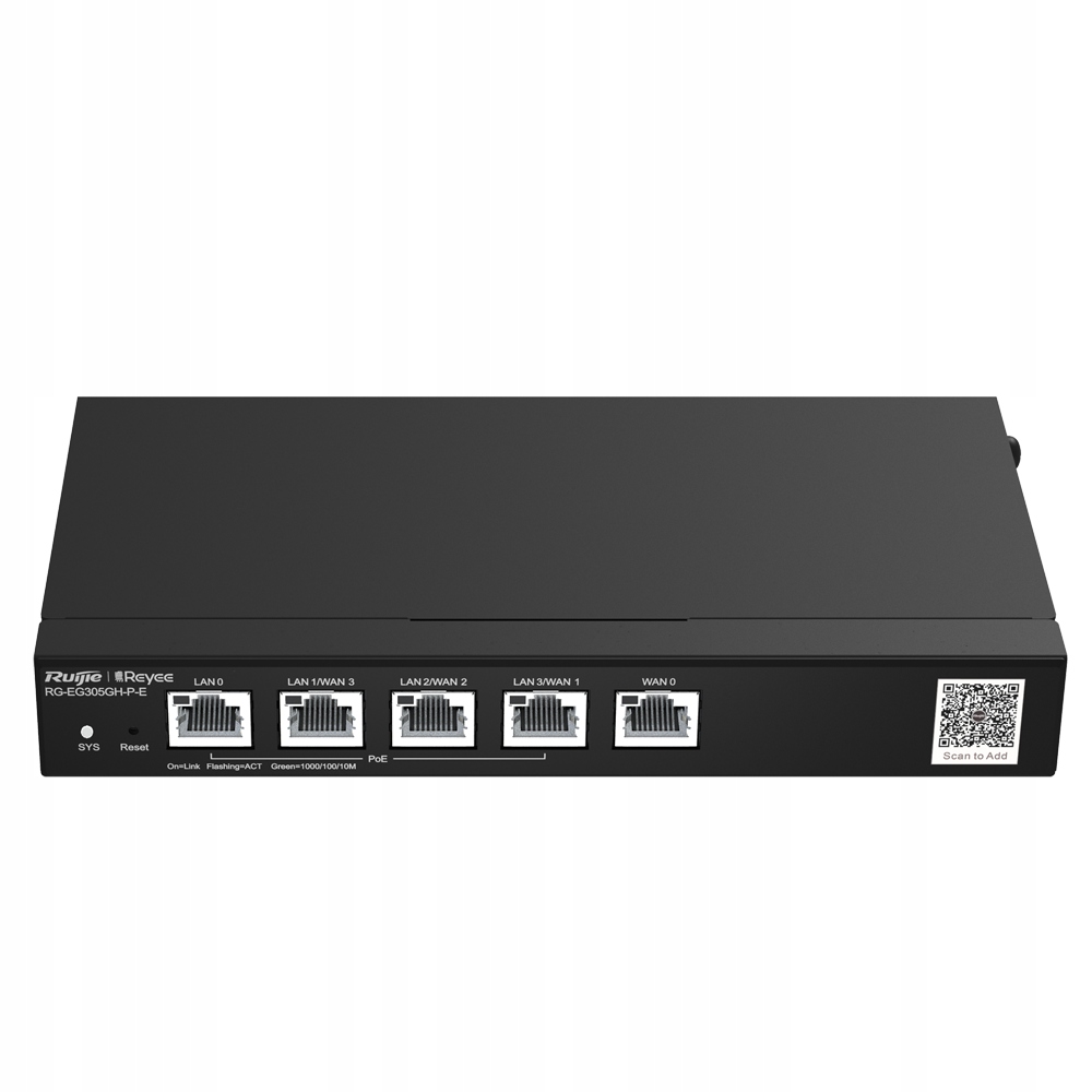 rgi-rg-eeg305gh-p-e является расширенным высокопроизводительным проводным маршрутизатором. Обеспечивает емкость 1,5 Гбит/с . Оснащен портами 5 RJ45 (1x LAN, 3X LAN/WAN и 1X WAN), работая в стандартном Gigabit Ethernet (10/100/1000 МБ/с). Кроме того, LAN от 0 до 3 - это порты poe с общим бюджетом 60 w , поэтому вы можете питать сетевые устройства, такие как IP -камеры или телефоны VoIP, без необходимости дополнительного источника питания. Он имеет много расширенных функций , одновременно простым для настройки и использования. Его можно управлять с помощью веб -сайта или приложения Ruijie Cloud .