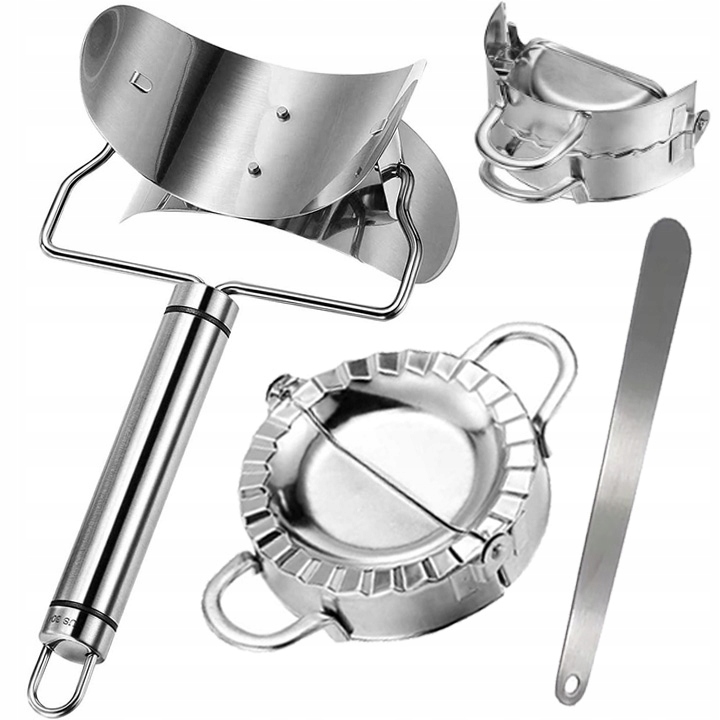 Набор позволит быстро приготовить готовые диски из теста для пельменей. Одним движением по кондитерской доске можно вырезать множество готовых кусочков теста для пельменей, которые затем можно наполнить начинкой и придать форму. Форма точно соединит пельмени с начинкой.
