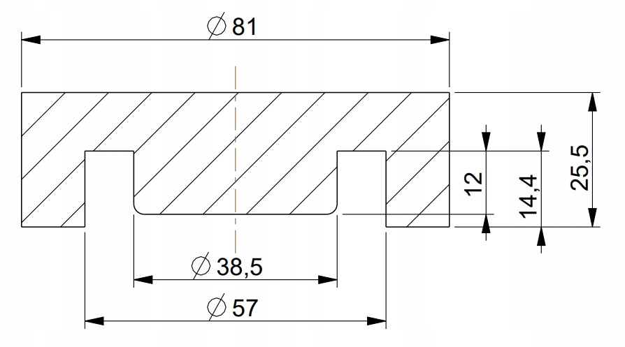 Внешняя ⌀81x25,5 мм / Внутренняя ⌀57x⌀38,5x12 мм