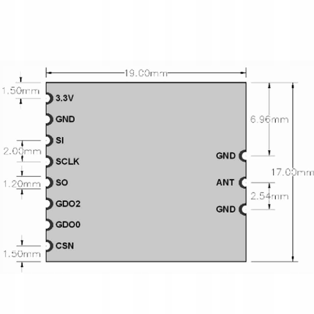 Усовершенствованный модуль беспроводной связи CC1101, обеспечивающий передачу данных в диапазоне 868 МГц. Это популярное решение, используемое в различных приложениях, таких как системы сигнализации, умные дома, устройства IoT (Интернет вещей) и тому подобное.