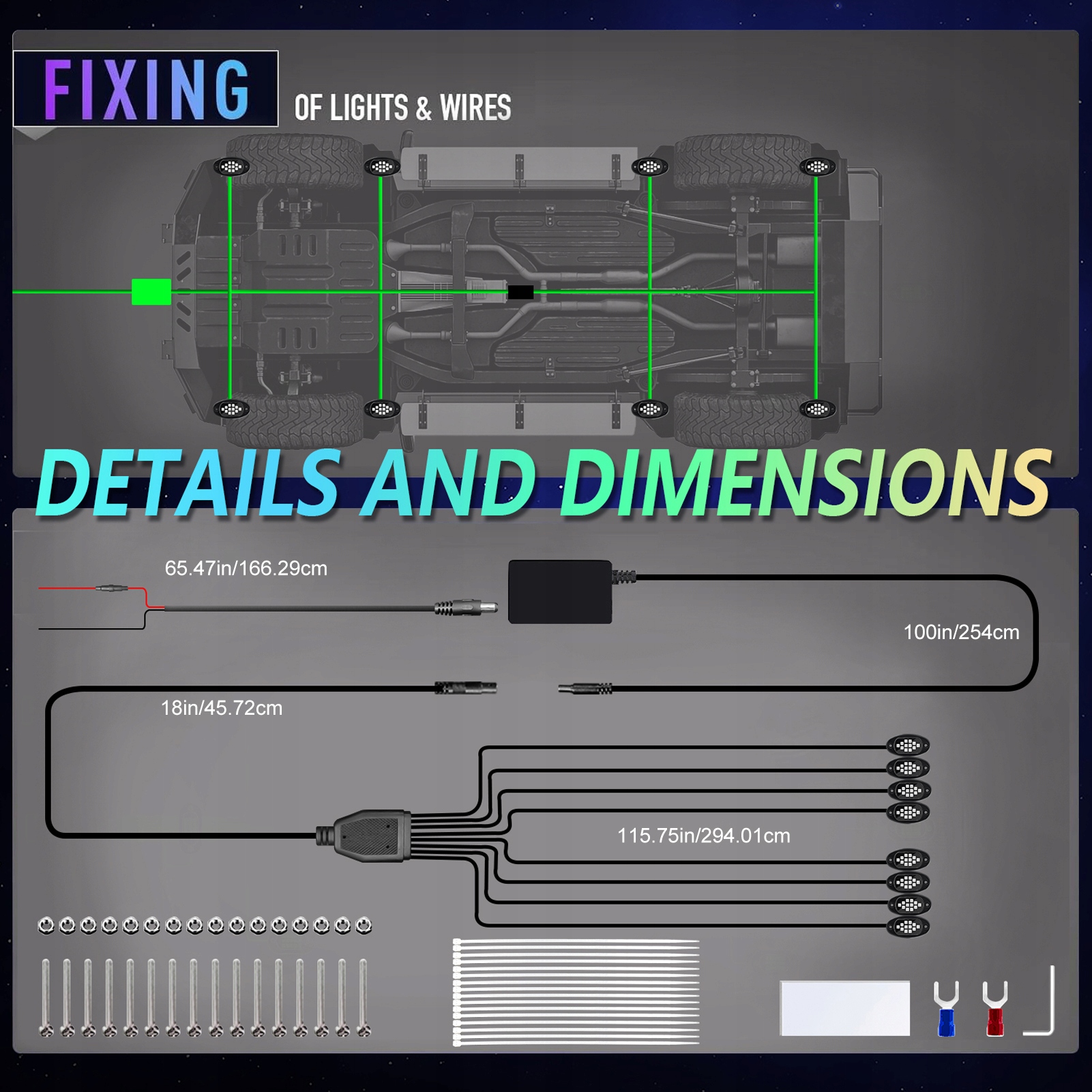 5. Universal Fit для большинства транспортных средств: идеально подходит для автомобилей, грузовиков, внедорожников, квадроциклов, лодок и многого другого. Установите под вашим автомобилем или используйте в качестве внутреннего/внешнего акцентного освещения, чтобы улучшить стиль днем или ночи.
