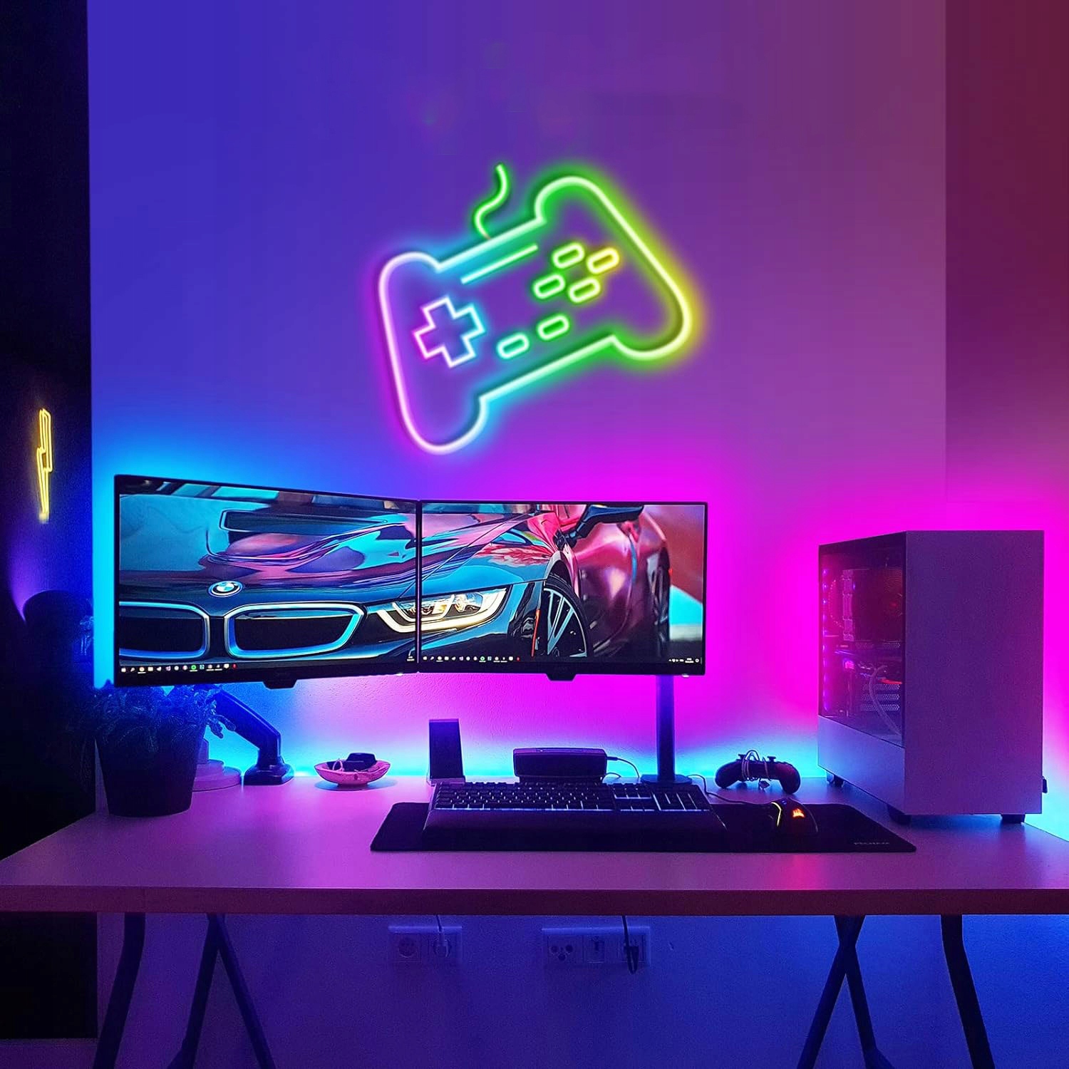 Подчеркните уникальную атмосферу вашей игровой комнаты, гостиной или спальни благодаря нашим стильным светодиодным полосам неонового RGB. Возможность любой цветовой комбинации позволяет создавать идеальную атмосферу для любого случая - от расслабляющих вечеров до динамических событий!