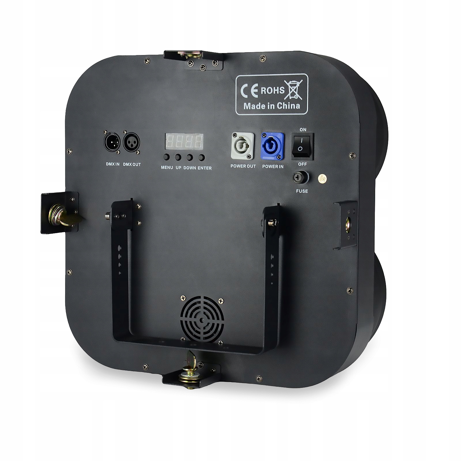 - Управление: панель со светодиодным дисплеем, поддержка DMX, управление музыкой.