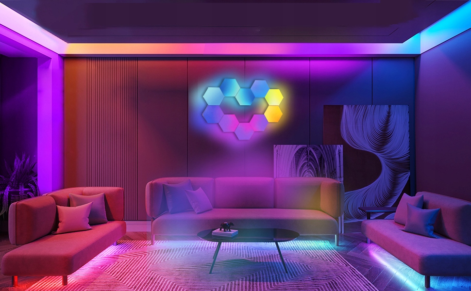 - 🌈Вдохновленные кубиками и головоломками, шестиугольные модульные светильники развлекут вас. Дайте волю своему воображению и комбинируйте неограниченное количество блоков, чтобы создать необычный декор комнаты.