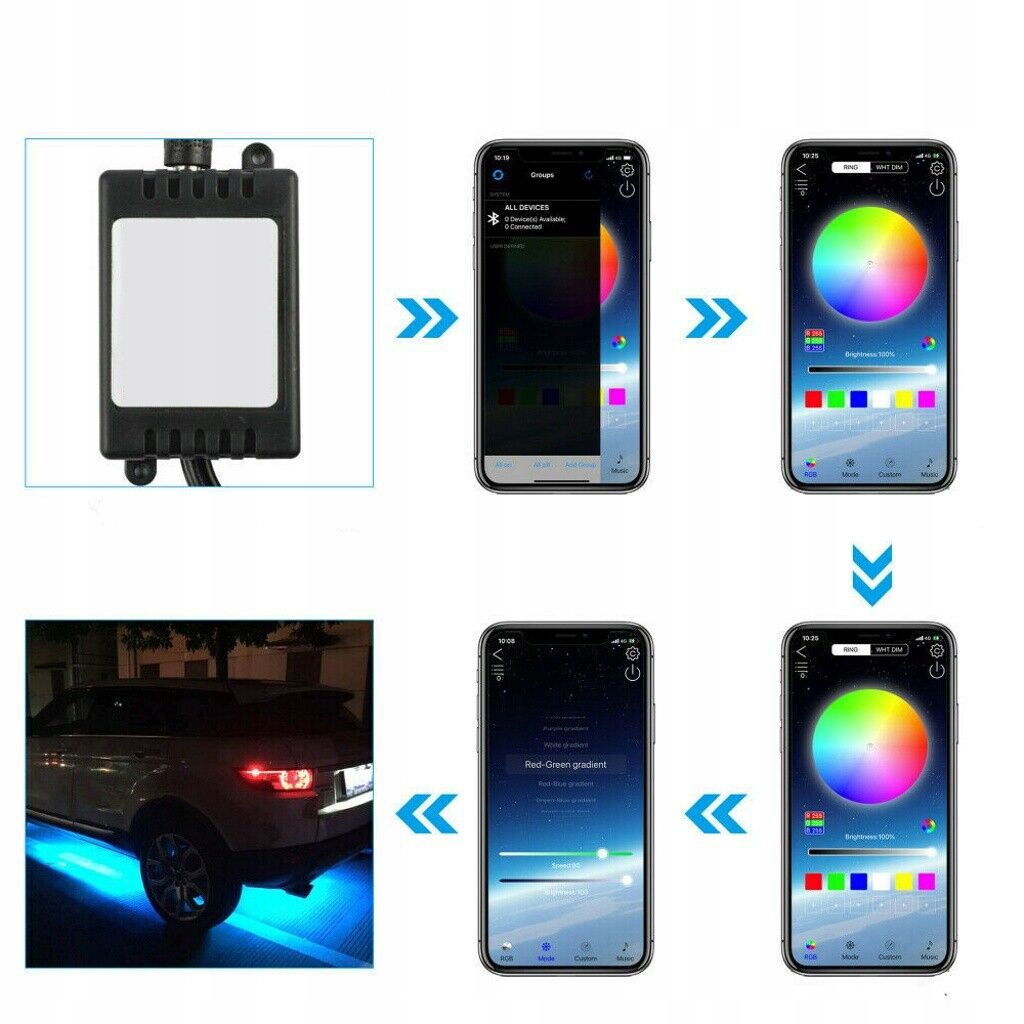 RGB СВЕТОДИОДНАЯ ПОДСВЕТКА ШАССИ ЛАМПЫ ПОД АВТОМОБИЛЕМ АВТО + ДИСТАНЦИОННОЕ УПРАВЛЕНИЕ