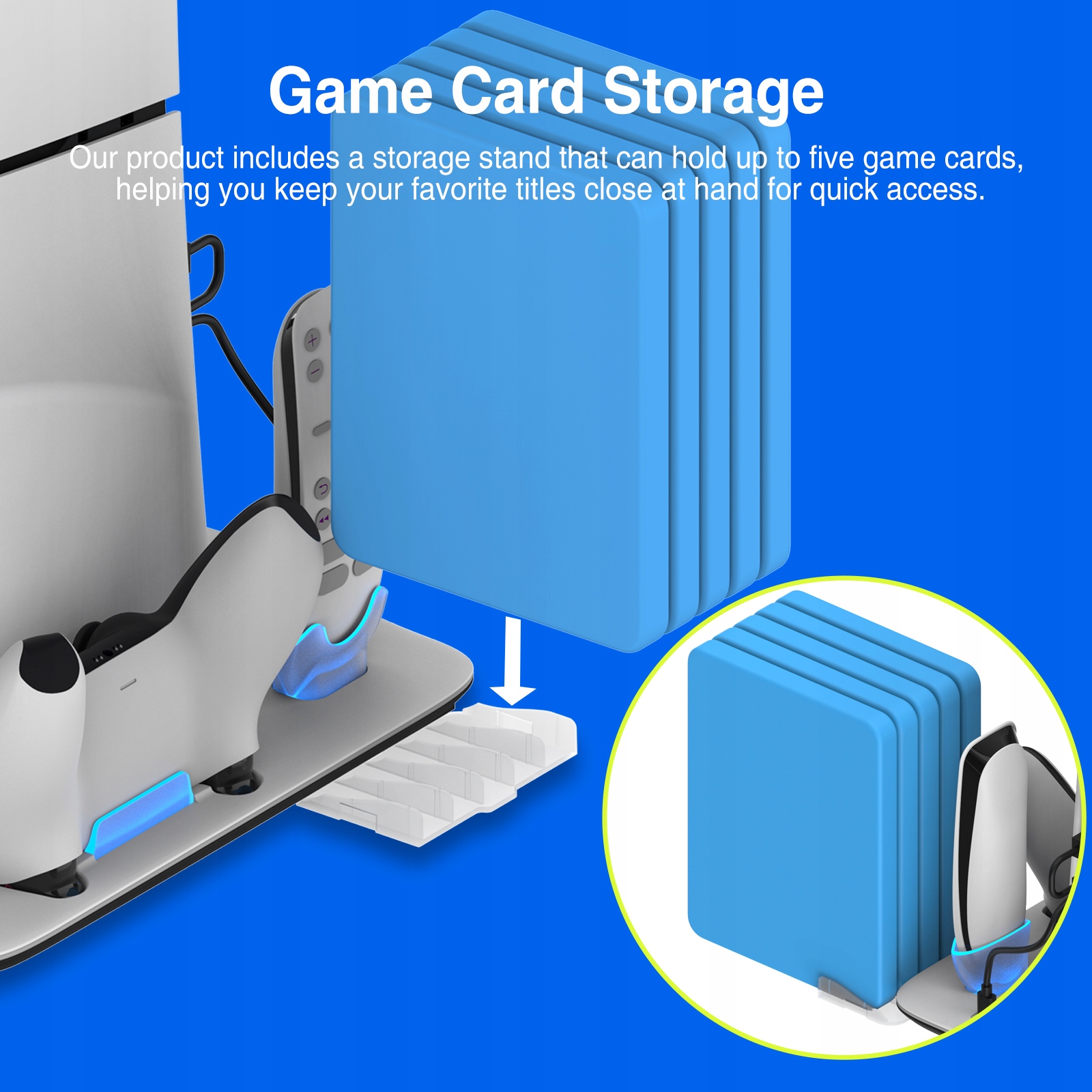 ❄️【Совместимость с новой консолью PS5 Slim】 Эта подставка для PS5 совместима с консолью PS5 Slim Disc/цифровой. Лицевая панель PS5 Slim подходит для дисковой/цифровой консоли PS5 Slim. Аксессуары для PS5 Охлаждающая станция PS5 также поставляется с предохранительным винтом, который крепит ее к консоли, что делает основание более надежным и сбалансированным. Зарядная станция контроллера PS5 оснащена встроенным интеллектуальным защитным чипом, предотвращающим перезарядку и обеспечивающим безопасность вашего устройства.