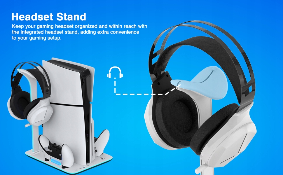 ❄️【Компактная охлаждающая подставка для всех аксессуаров PS5】 Если вам нужна универсальная подставка, которая сэкономит место и вместит все ваши аксессуары для PS5, система охлаждения PS5 идеально подойдет вам. Эта подставка для PS5 с турбовентилятором и зарядной станцией с двумя контроллерами подходит для любого компактного размера, поставляется с подставкой для наушников и панелью, совместимой с консолью, дополнительными USB-портами для зарядки других устройств и съемным игровым слотом, который можно использовать для Go. , чтобы сэкономить место на столе, когда вы им не пользуетесь.