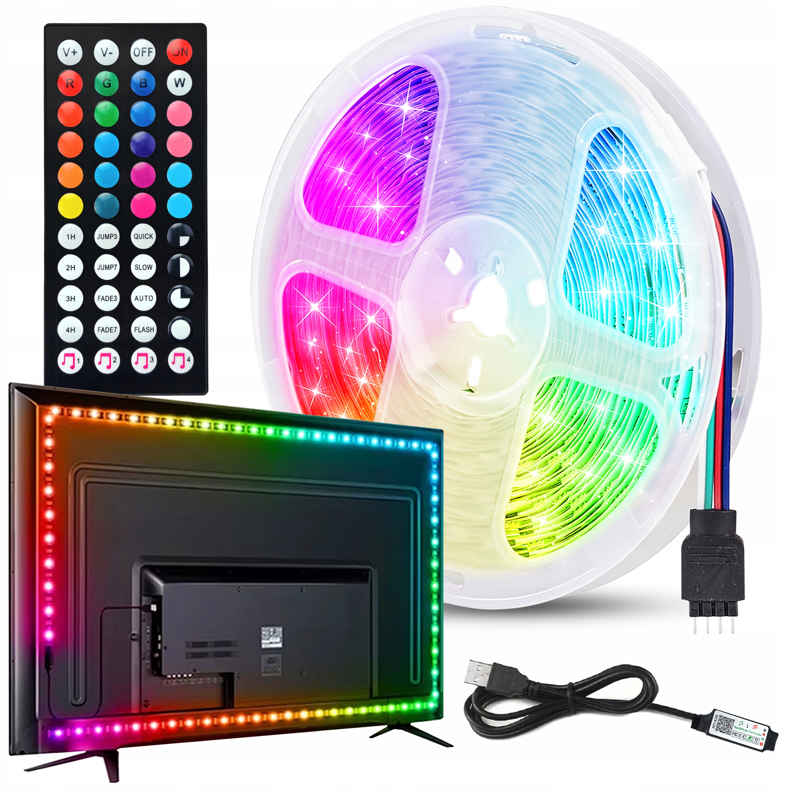 RGB світлодіодна стрічка 5м підсвічування телевізора з пультом USB контролера