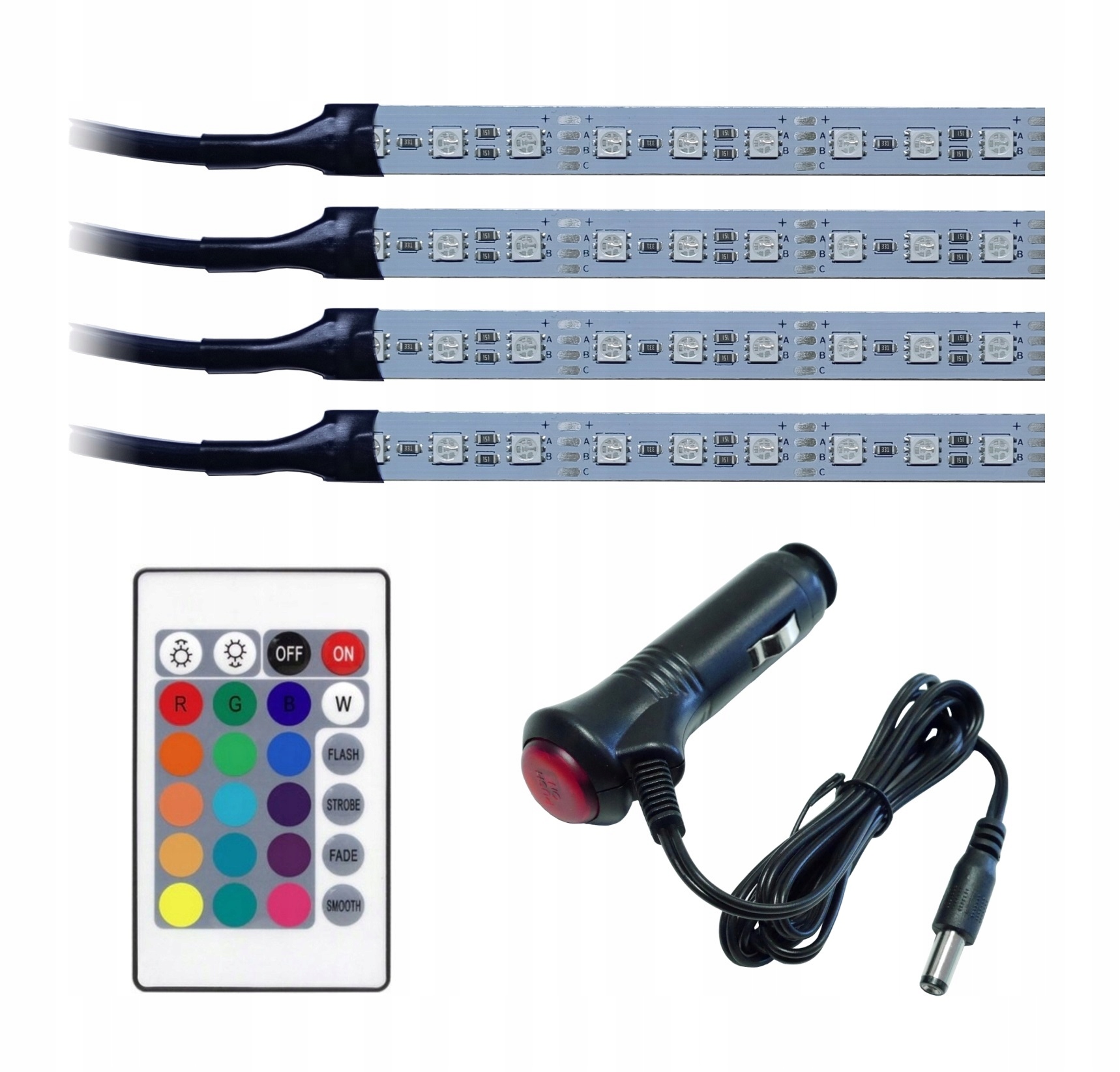 - Набор из 4 полос алюминия RGB, 9 светодиодов