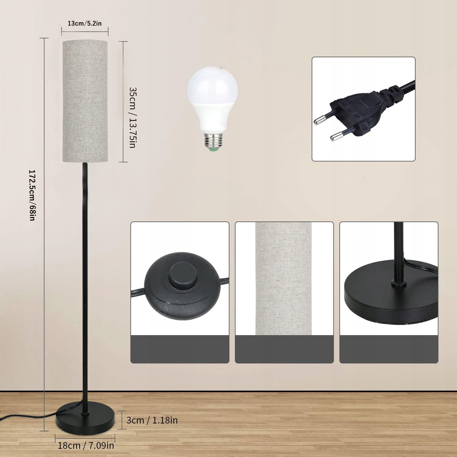 💡 【Простота установки】 Установка нашего торшера проста и может быть выполнена одним человеком. ① Сначала скрутите вместе опоры освещения, затем вставьте основание. ② Оберните льняной абажур вокруг патрона лампы. ③ Вкрутите абажур и лампочку в патрон лампы.