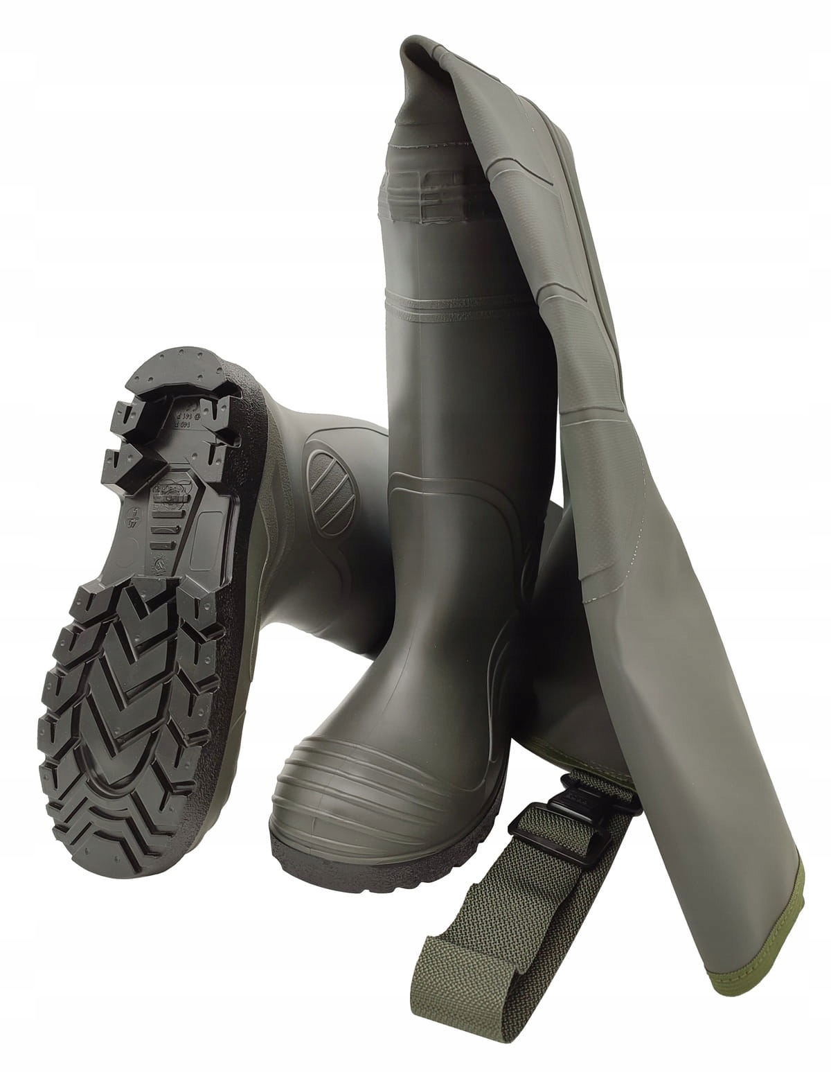 ПРОЧНЫЕ РЫБАЛОЧНЫЕ БОТИНКИ с постоянным подогревом и усиленными коленями. Конструкция длиной до паха с гибкими опорными креплениями. Полностью водонепроницаемая, позволяет ходить по воде. Удобное крепление к брючному ремню. Оливковый цвет. Размер: 39 – 48.