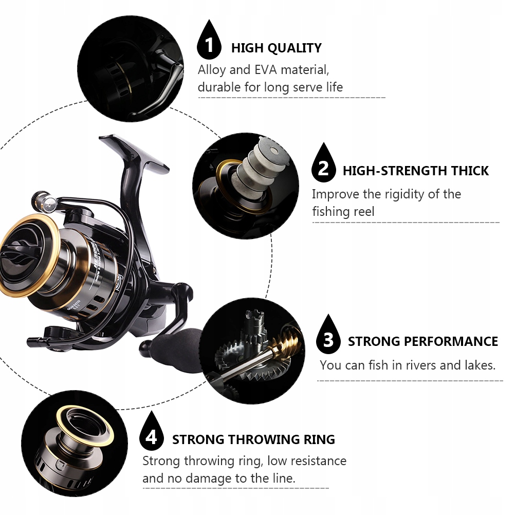 ✔ b> из высококачественного сплава и материала EVA и материала, эта рыболовная катушка долговечна и практична в течение длительного времени.