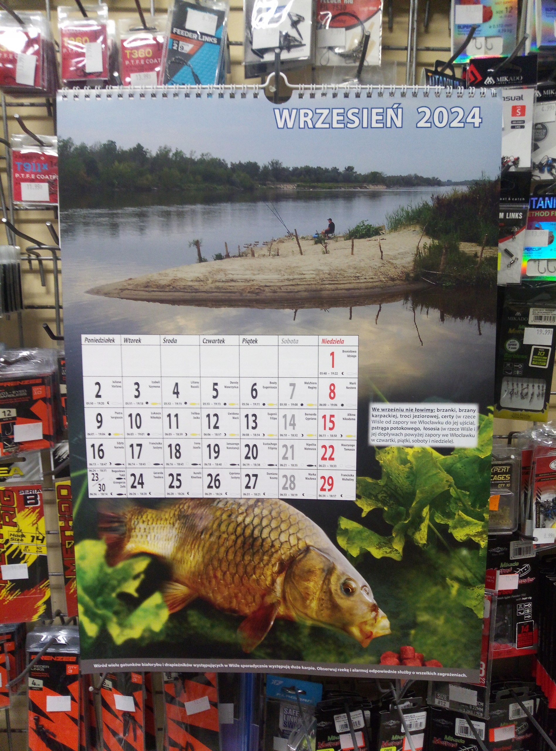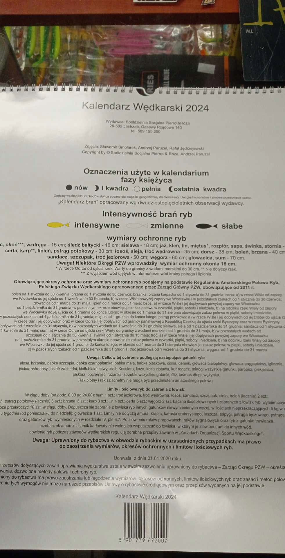 Подвесной календарь рыбалки 33х48см на 2024 год с возможностью подвеса на стену, крупные иллюстрации и формат календаря позволяют быстро и удобно пользоваться. В календаре также указана интенсивность поклевок рыбы в данный день, фазы луны и защитные размеры рыбы.