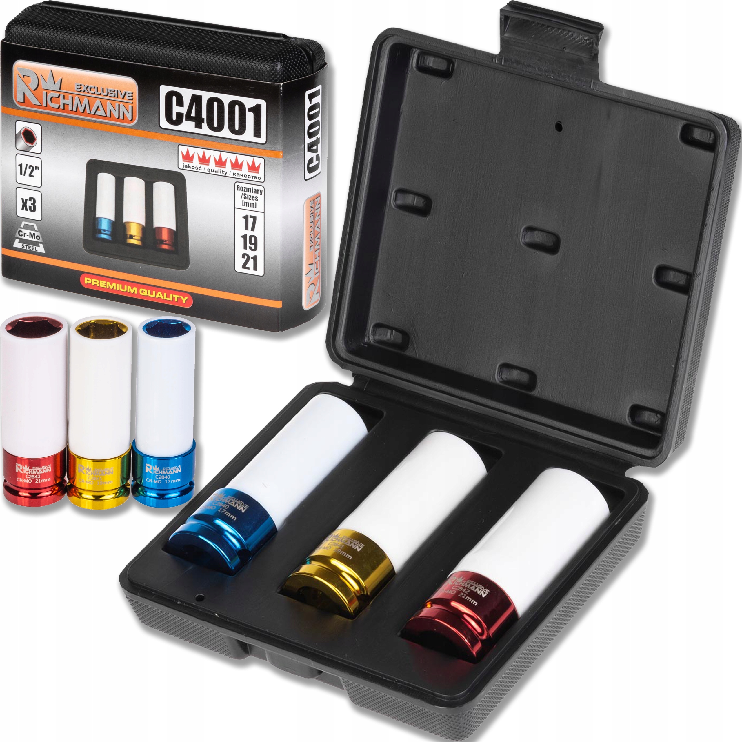 НАБОР НАСАДОК RICHMANN ДЛЯ ДИСКОВ 1/2 ДЮЙМА 17 19 21 ММ