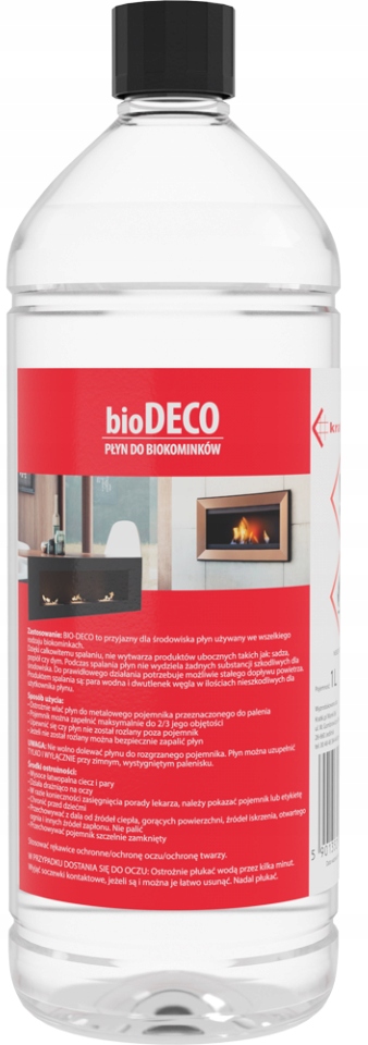 1 литр биотоплива сжигает в течение 2-5 часов - в зависимости от размера пламени. Это эффективно и относительно дешевый источник энергии. После нескольких минут его использования ощущается четкое повышение комнатной температуры. Дополнительным преимуществом биотоплива является отсутствие сажи или золы, возникающего при курении в традиционных каминах. Мне нужно только - как и в других устройствах с обнаруженным пожаром - как постоянное снабжение воздуха. Био -камин также можно использовать для ароматерапии. Биотопливо не высушивает воздух, но увлажняет его. Предоставляя ароматизированные масла, мы можем использовать биофирфлис в качестве лекарственного устройства. Магия и очарование огня камина создают уютную атмосферу дома и является источником расслабления. Биотопливо - это польский продукт, 100% экологический. Доступен в 1 литр упаковки.