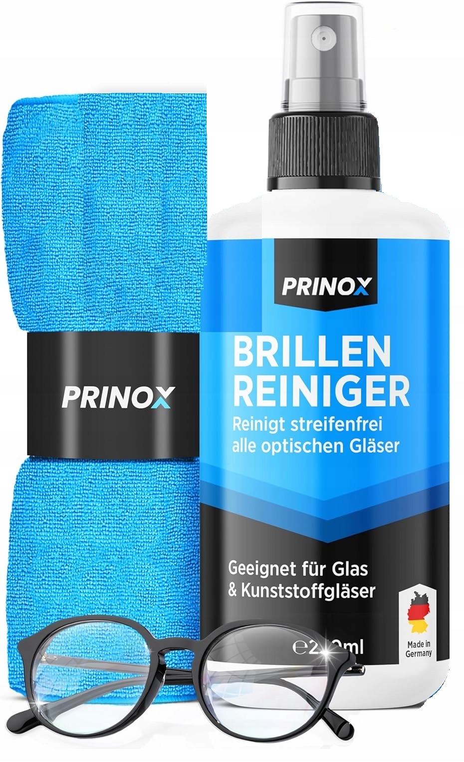 - Качество из Германии – спрей для чистки очков оптического качества, произведенный в Германии. Наш спрей для чистки очков Prinox разработан, протестирован и изготовлен в Германии.