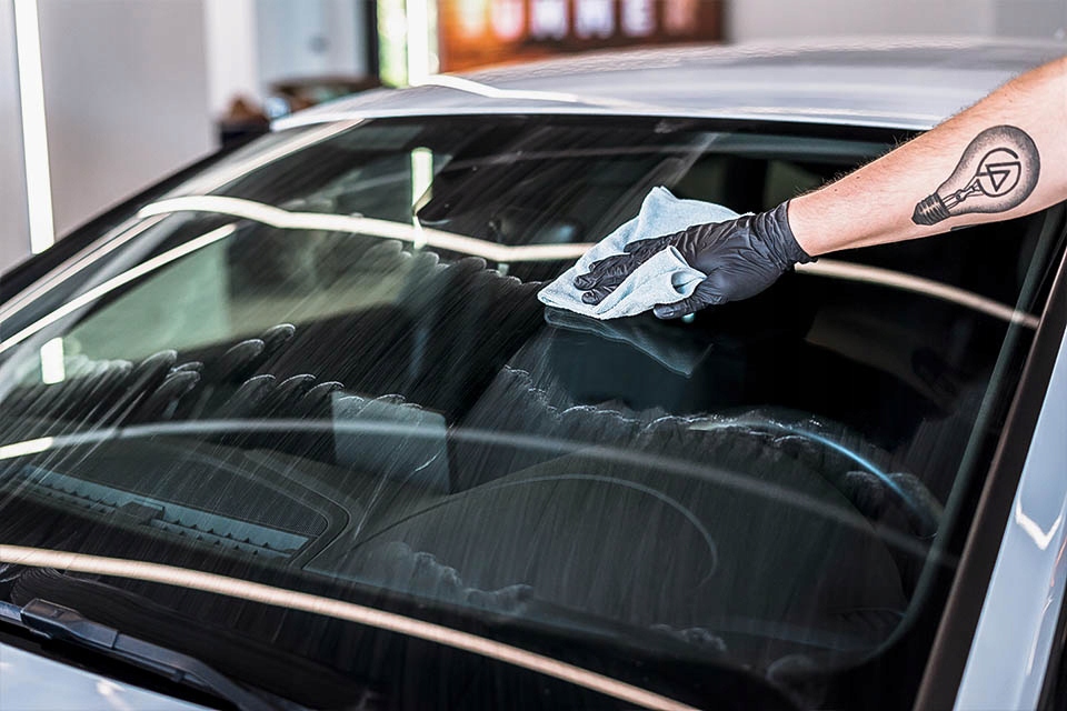 1: Перед использованием тщательно вымойте автомобиль шампунем с нейтральным pH и очистите окна специальным средством — Glaco Compound Roll On или Compound Z.
