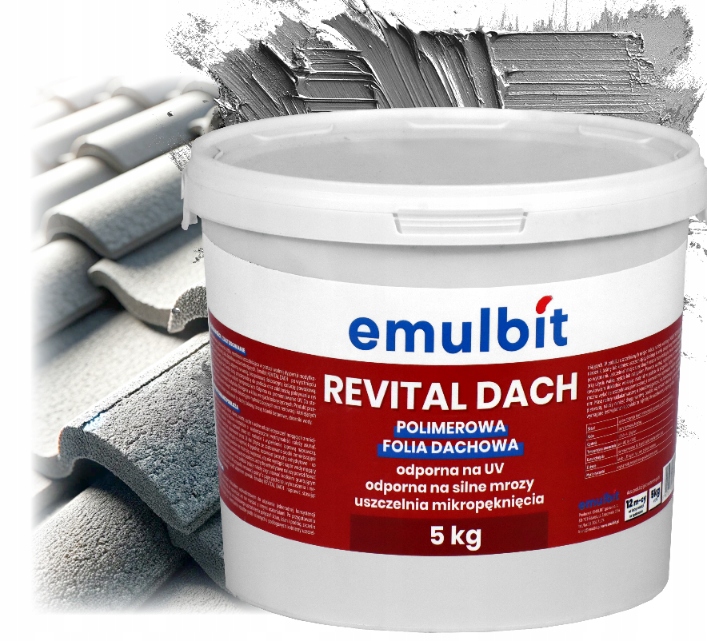 Emulbit REVITAL DACH — революционная однокомпонентная герметизирующая мембрана, которая изменит ваш подход к защите кровли. Готовая к использованию экологическая формула, доступная в удобных 5-килограммовых упаковках, основана на современной дисперсии модифицированной синтетической смолы, которая после высыхания создает водонепроницаемое, эластичное и бесшовное покрытие. Надежный в любых условиях, устойчивый к ультрафиолету и низким температурам, обеспечивает длительную защиту и эстетичный вид, сохраняя при этом гибкость и отличную адгезию к основанию.
