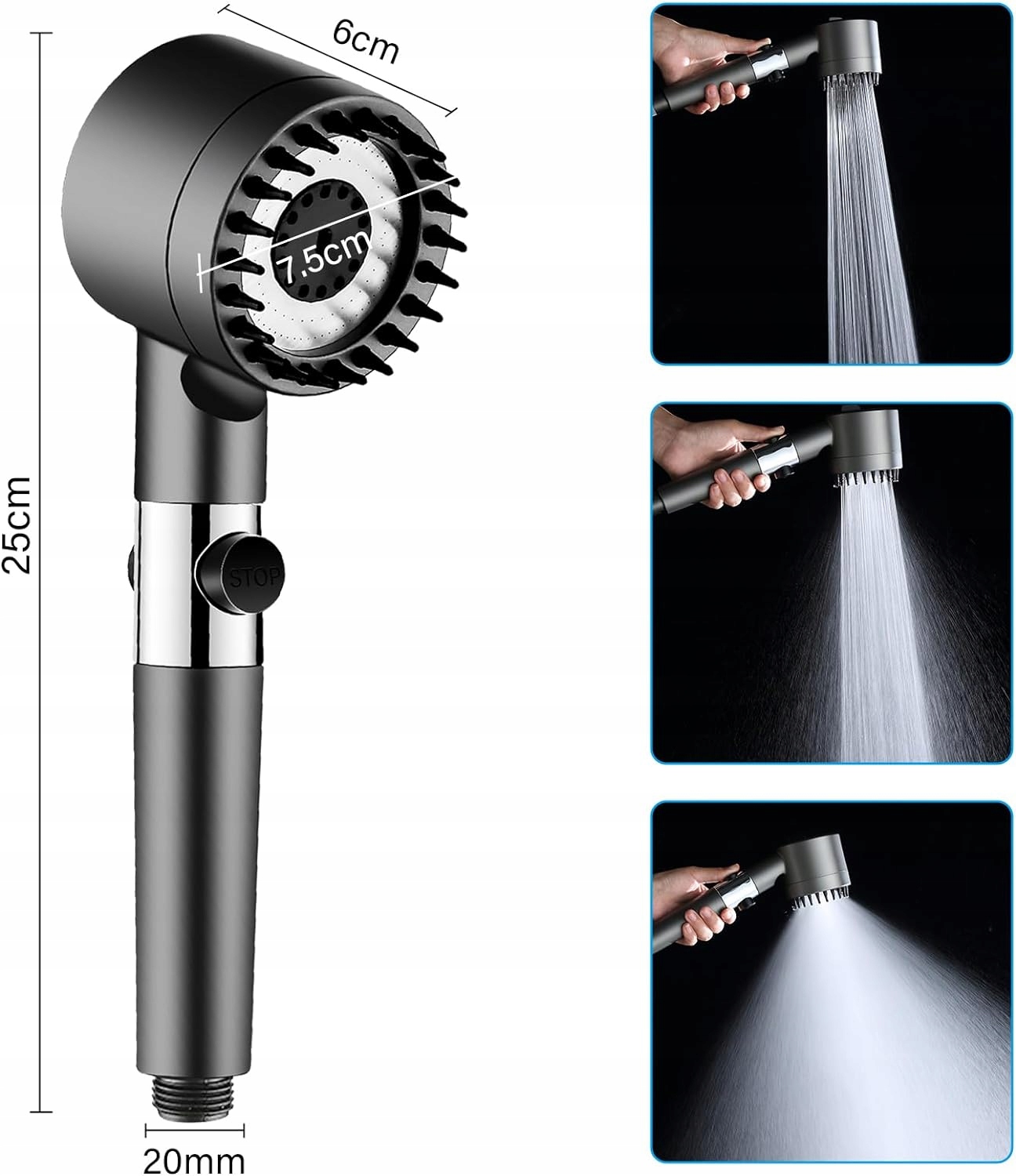 💧 В насадке для душа используется передовая технология внутренней блокировки потока и конструкция с одной кнопкой. Вы можете использовать его одной рукой, чтобы остановить поток воды так легко, как захотите. Простонажмите кнопку «СТОП» на насадке душа, чтобы остановить подачу воды во время мытья головы, намыливания или бритья.