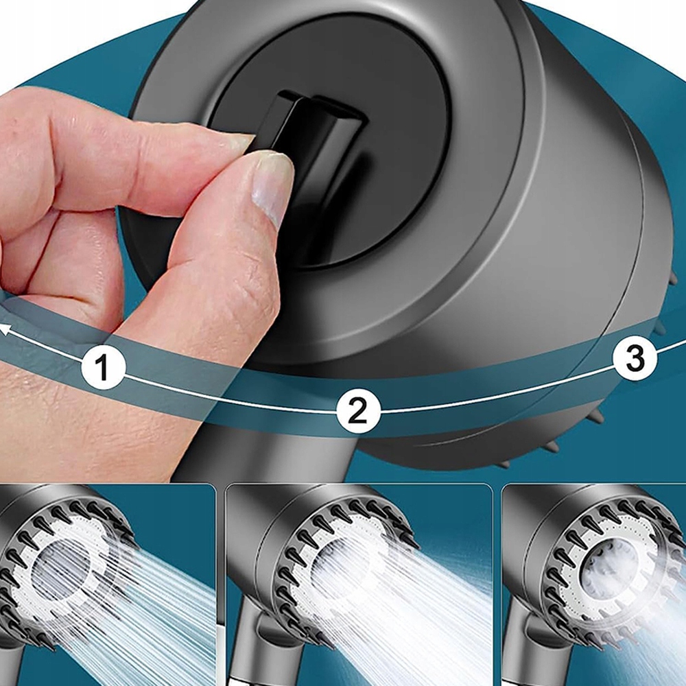 💧 Этот ручной душ предлагает режим струи (успокаивающий и мягкий), режим дождя (мягкая вода), режим смешивания (сильный импульс) и режим ополаскивания (снимите насадку) . Просто слегка поверните ручку на задней части насадки для душа, чтобы легко переключаться между режимами.