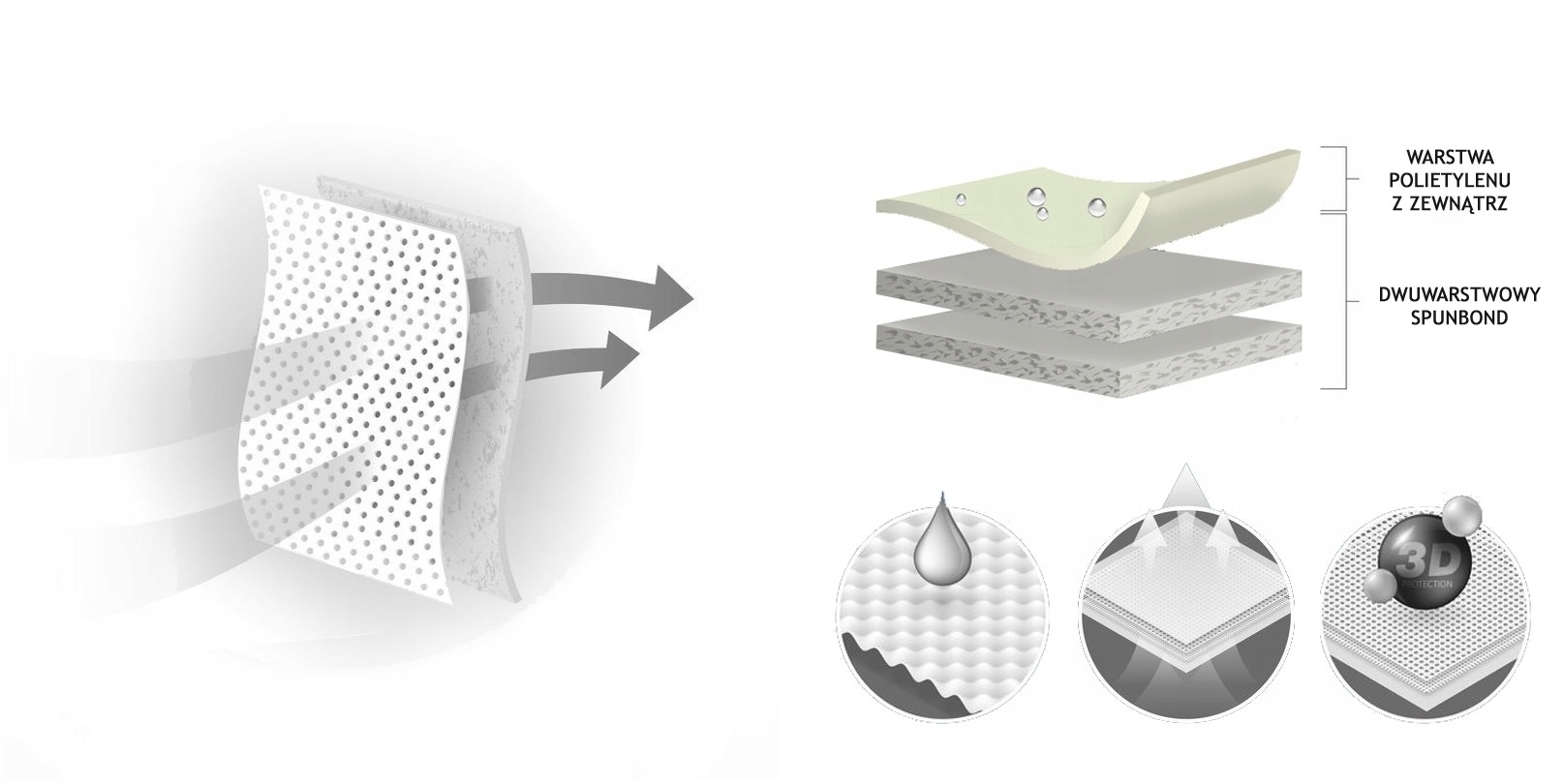 - Верхний, внешний слой - это ткань с повышенной прочностью разрыва и повреждением. Эта ткань водонепроницаем.