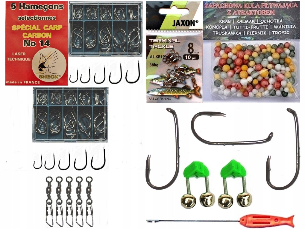 КРЮЧКИ УГОРЬ С ЗАУФЕРАМИ - 3 ШТ. + КРЮКИ В КОРОБКАХ - РАЗНЫЕ РАЗМЕРЫ 100 ШТ.