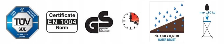 - ✅Сертификат TÜV, грузоподъемность 200 кг/м², нагрузка до 180 кг (поверхностная нагрузка) в соответствии с новым стандартом PN EN 1004-01, группа лесов 3