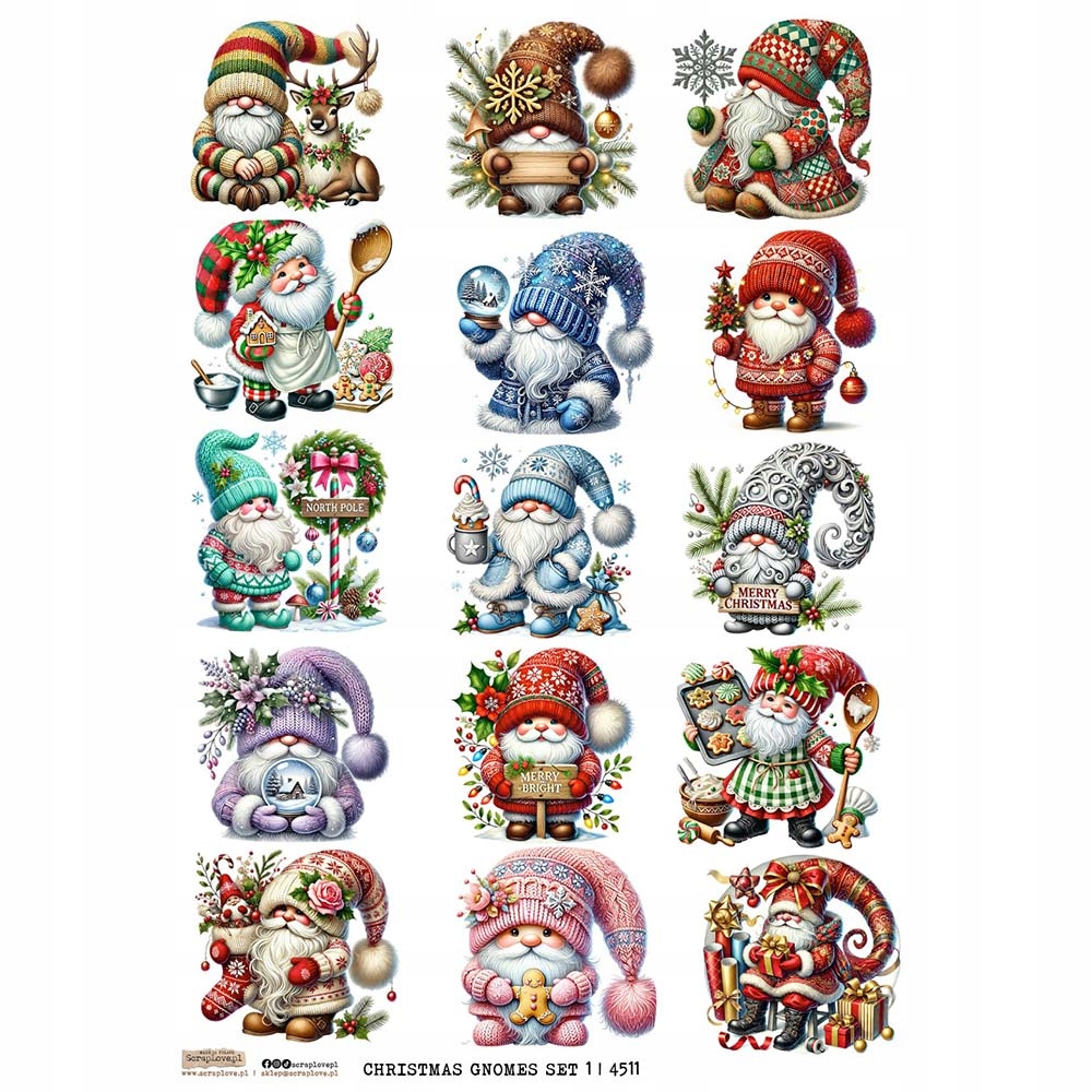 РИСОВАЯ БУМАГА для декупажа А4 - Скраплов - Рождественские гномы 1
