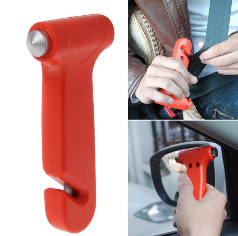 Небольшой и компактный безопасный молоток, которым при необходимости можно разбить боковое стекло автомобиля или отрезать застрявший ремень безопасности.
