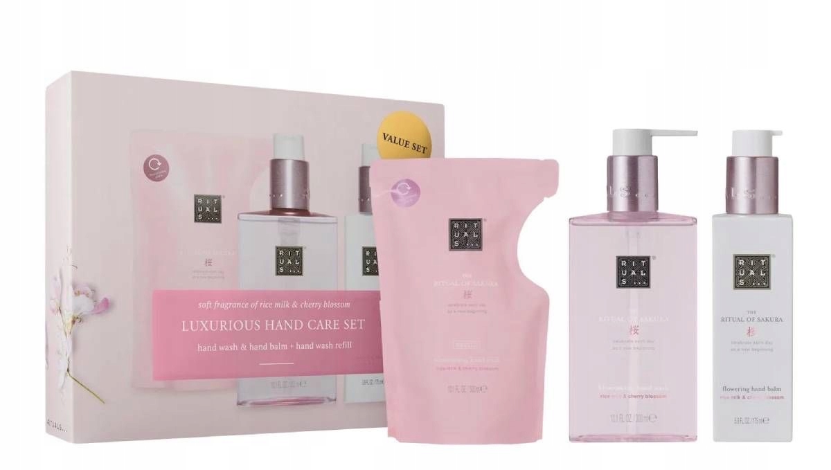 - The Ritual of Sakura Hand Wash, жидкое мыло для рук 300 мл, обогащенное чрезвычайно успокаивающим и нежным ароматом зизифуса и белого лотоса, нейтральная формула pH тщательно и эффективно очищает посуду и исключительно бережен к рукам.