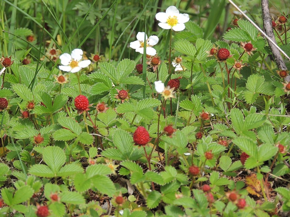 Небольшой многолетник, вырастающий примерно до 20-30 см. Прикорневые листья пильчатые, слегка опушенные. Радиальные белые цветки растут на коротких цветоножках, до 10 на растении. Маленькие красные плоды с необыкновенным ароматом и вкусом. Земляника плодоносит очень долго, с июня до конца сентября.