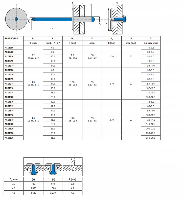 Применение: заклепки используются для постоянного подключения тонкопроизводных элементов, в частности листы с нагрузки -несущими элементами. Увеличенный воротник используется для прикрепления деликатных элементов к твердой земле. Используется в промышленности, строительстве и моторизации.