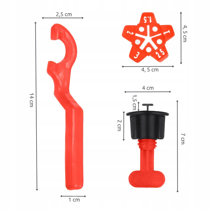 - 1 монтажный ключ в наборе - Система выравнивания плитки очень проста в использовании, а не только профессионал, но и любитель, который занимается ремонтом дома. Набор включает в себя 1 ключ к монтированию/затягиванию, что значительно улучшает работу.