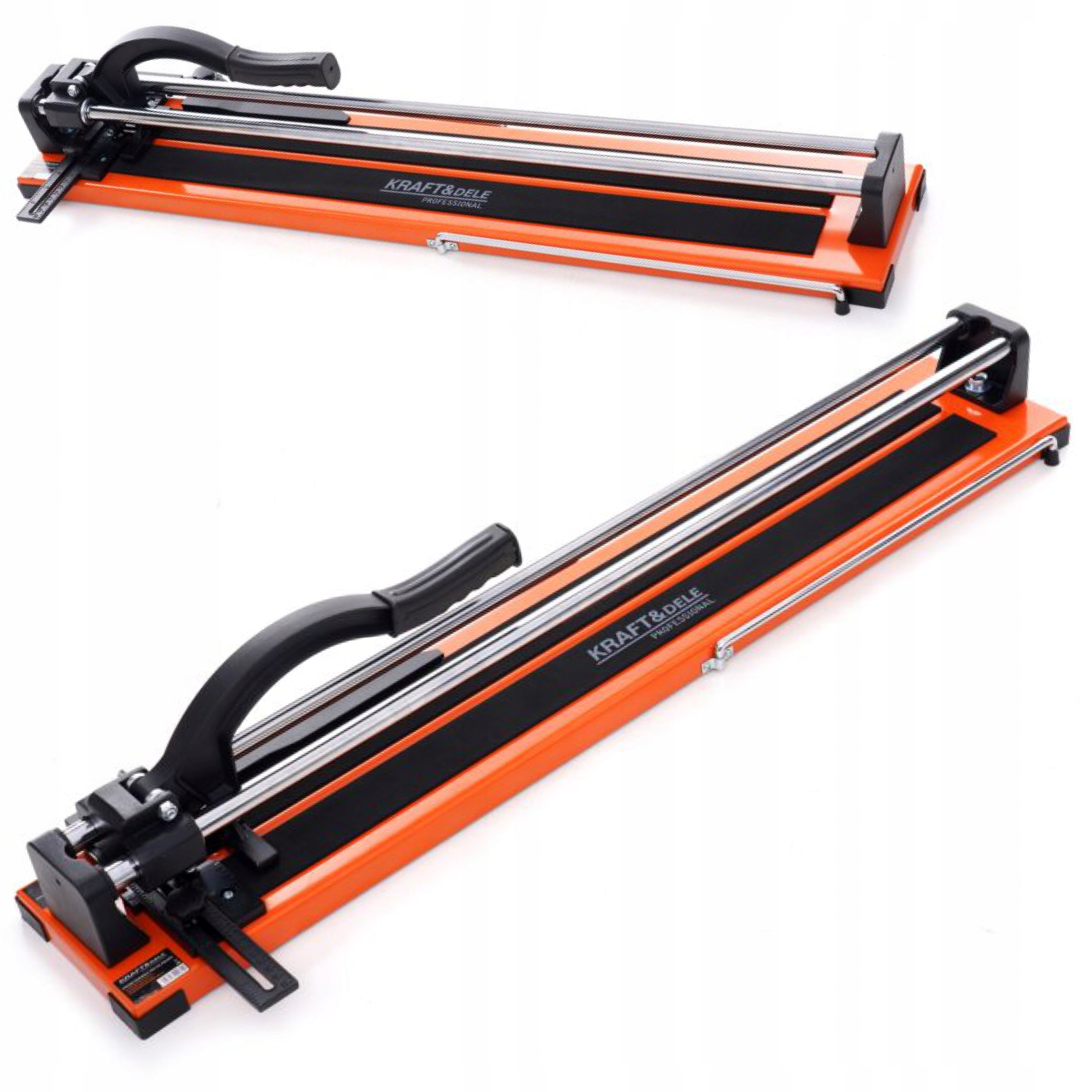 Плиткорез KD10673 от бренда Kraft&Dele состоит из устойчивого основания из толстого стального листа, облицованного слоем технической микрорезины, двух параллельных направляющих и скользящего по ним режущего узла. В комплект входит дисковый нож диаметром 14 мм, изготовленный из специально закаленных спеченных твердых сплавов. Благодаря подвижному угловому кронштейну, прикрепленному к основанию, можно резать плитку под любым углом. Прочная и устойчивая конструкция позволяет использовать устройство для ремонтных и укладочных работ на любительском и профессиональном уровне. Большой размер основания позволяет резать стандартную плитку самого большого размера.
