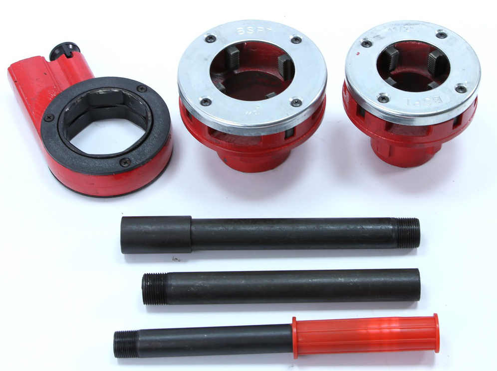 В комплект входят 2 матрицы, которые позволяют нарезать резьбу 1/2" и 2" б> . Это устройство, которое значительно ускорит процесс заправки, а храповой механизм сделает работу гораздо менее утомительной