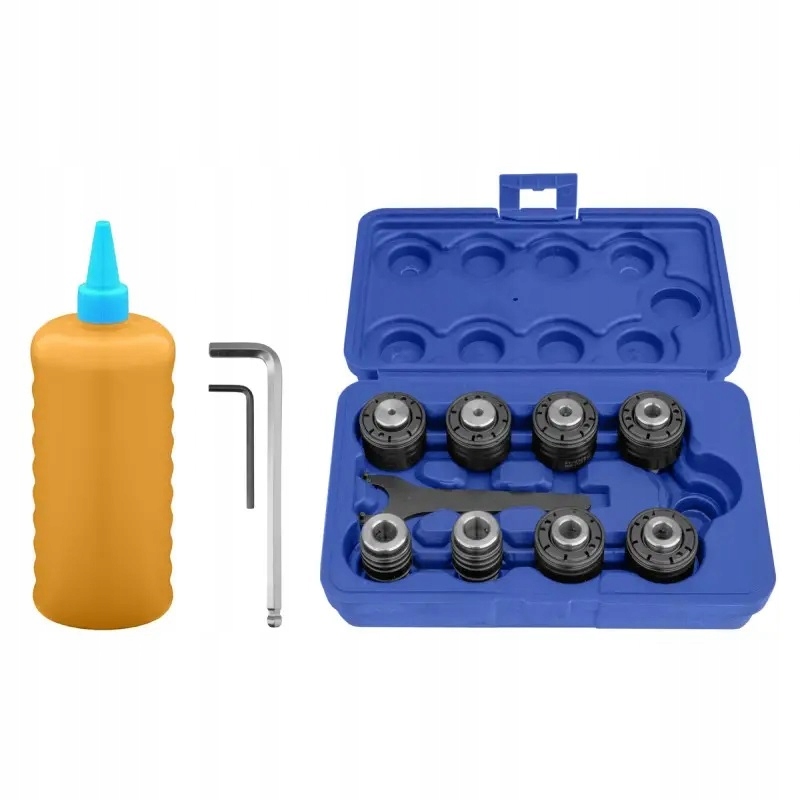 Цанги для метчиков оснащены регулируемыми предохранительными муфтами. Муфты во втулках предварительно отрегулированы на стандартные значения крутящего момента для конкретных размеров метчиков, но эти настройки можно корректировать с помощью специального ключа, входящего в комплект. Он также включает в себя поворотный рычаг большого радиуса, который облегчает позиционирование метчика на заготовке, обеспечивая точное и эффективное нарезание резьбы. Предназначен для нарезания резьбы в различных материалах, таких как сталь, нержавеющая сталь, алюминий и цветные металлы.