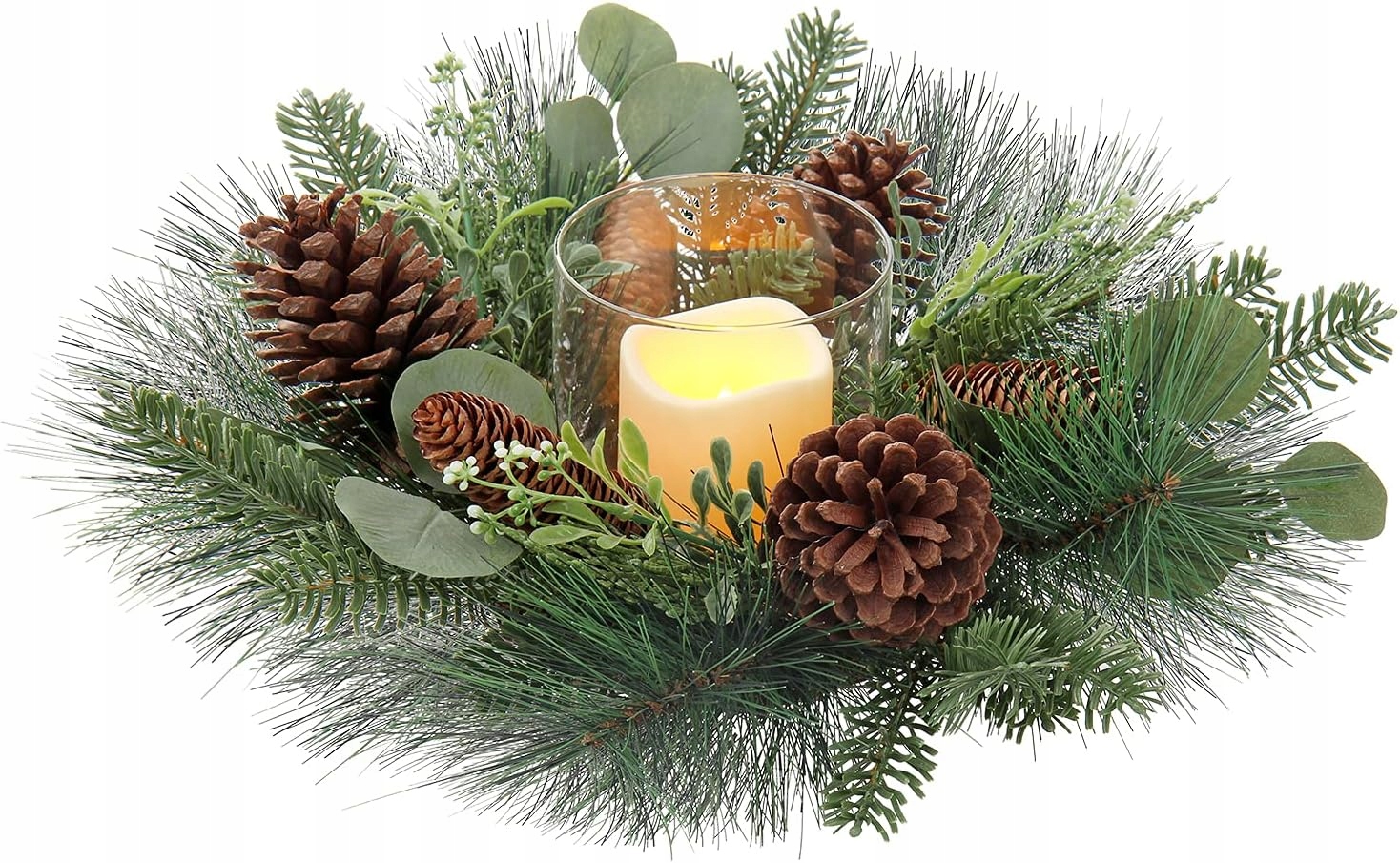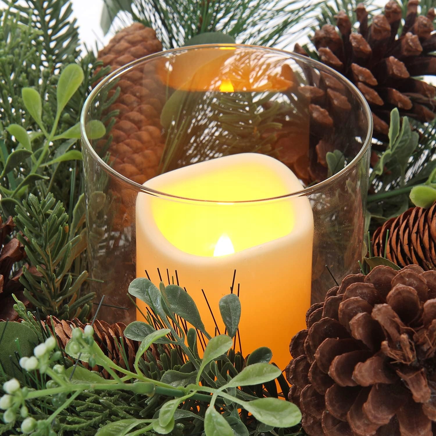 Движущаяся беспламенная свеча — оснащена движущейся беспламенной свечой. Поместите беспламенную свечу в стеклянный подсвечник с рождественским венком. Теплый свет беспламенной свечи порадовал ваших друзей и близких.