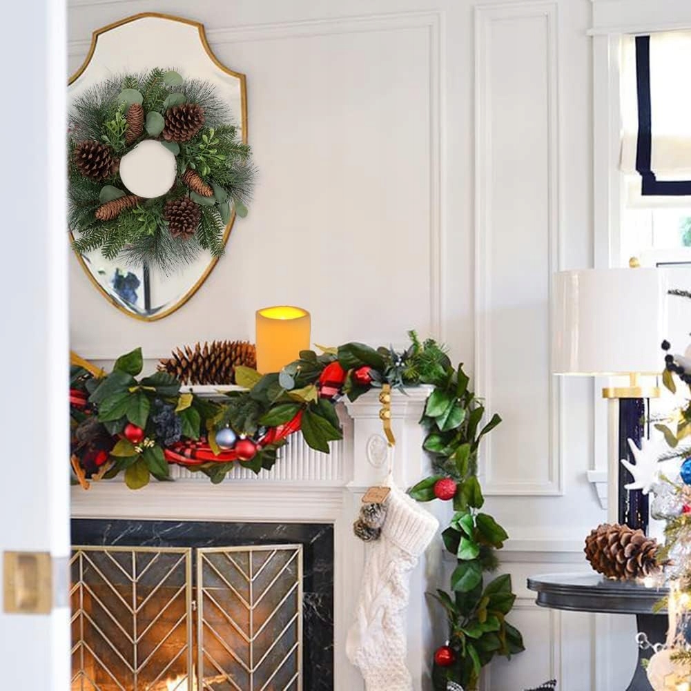 Красивое рождественское украшение. Этот венок станет привлекательным дополнением к праздничным украшениям в помещении и на открытом воздухе. Стеклянный подсвечник можно снять и повесить венок на дверь. Рождественский венок имеет красивый смысл. Он символизирует счастье и надежду и станет отличным подарком для друзей и семьи.