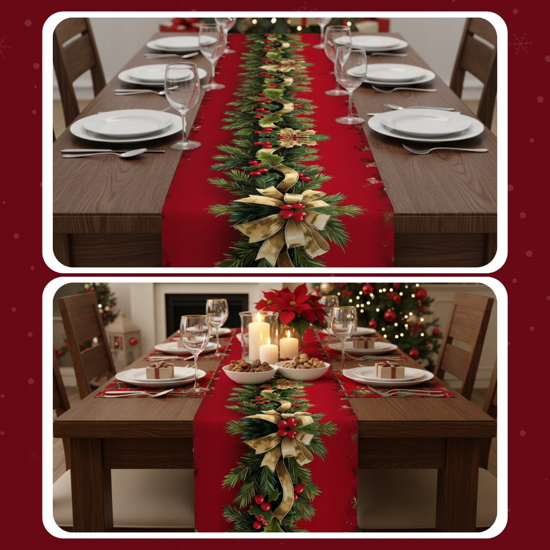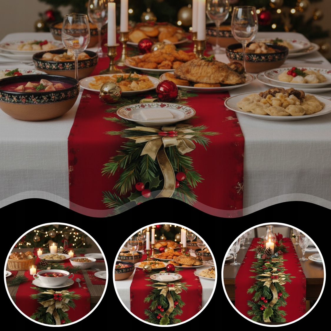 ➡️ ПОДЧЕРКИВАЕТ УНИКАЛЬНОСТЬ ВСТРЕЧ — дорожка для стола делает блюда более праздничными и стильными. Идеально подходит для рождественского ужина, рождественских завтраков и семейных посиделок.