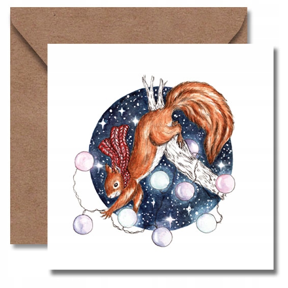 Рождество — особое время, когда мы хотим украсить места, в которых проводим время . Белки, как вы увидите, делают то же самое. Они вешают светящуюся гирлянду, чтобы осветить это особенное время, наступающее в конце года. Так что возьмите этот свет и отправьте его своим близким. Открытка с гирляндой и милой рыжей белкой наверняка вызовет улыбку на их лицах.