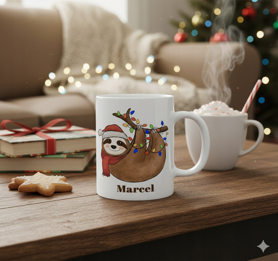 Рождественская кружка Ленивец ко Дню Святого Николая с индивидуальным именем