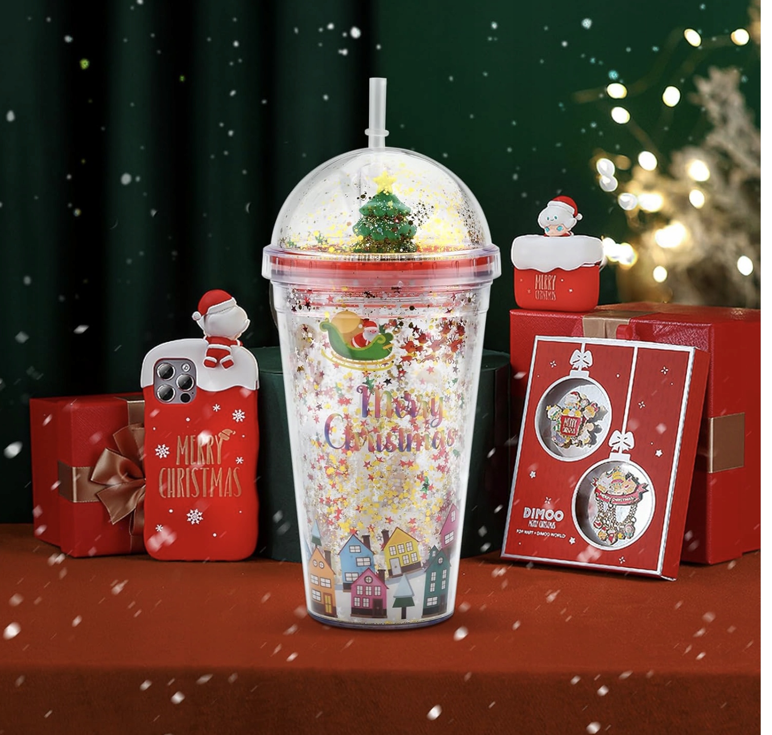 Рождественская кружка TSLBW 450 мл с крышкой и трубочкой Merry Christmas