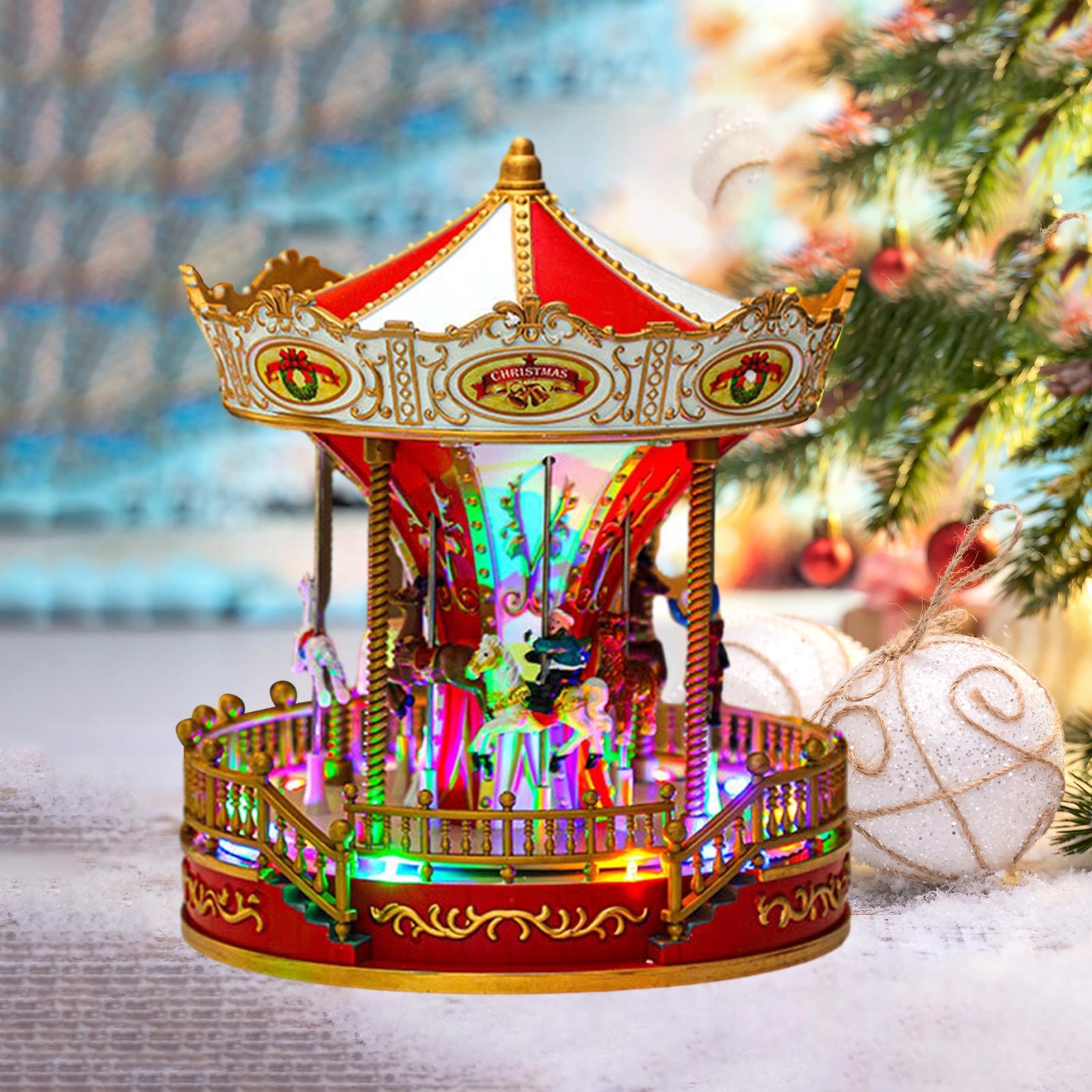 [Функция музыки и света]: музыкальная шкатулка со светодиодной каруселью и яркими огнями создает теплую праздничную атмосферу Рождества.