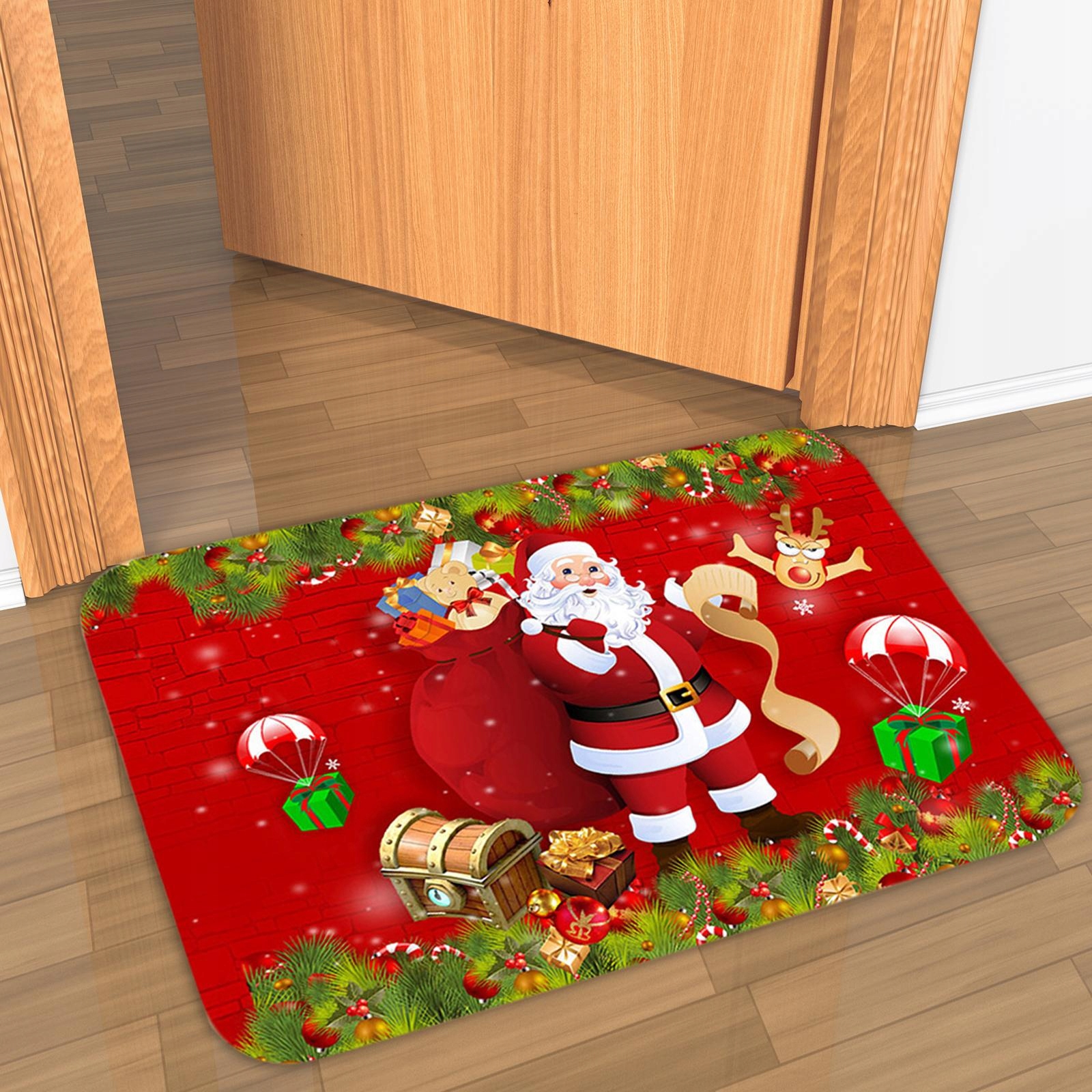 [Рождественское украшение 2023]: красный праздничный коврик для пола, очаровательные рождественские элементы, сделанные из мультфильмов, добавьте сильную атмосферу фестиваля. использовать.